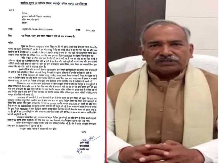 रुद्रपुर। गदरपुर विधायक अरविंद पांडेय के सोशल मीडिया पर लगाए गए अवैध खनन के आरोपों पर खनन विभाग ने तीखा जवाब दिया है। विभाग ने कहा कि विधायक द्वारा कही गई बातें वास्तविकता से परे हैं। विभाग ने स्पष्ट किया कि गदरपुर तहसील क्षेत्र अंतर्गत गूलरभोज से जसपुर रोड तक बस्तिया नदी तली में न तो 200 मीटर से 2 किलोमीटर तक और न ही 50–60 फीट गहरे गड्ढे अवैध खनन से बने पाए गए हैं।
